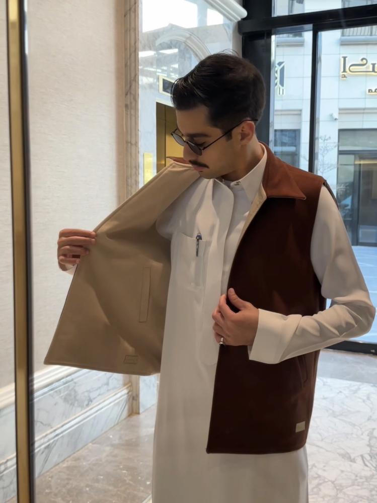 سديري جوخ رجالي – تصميم فاخر يجمع بين الأصالة والعصرية، قابل للارتداء على الجهتين لإطلالات متعددة. مصنوع من جوخ عالي الجودة ليمنحك الدفء والأناقة، ويأتي بتغليف أنيق ليكون خيارًا مثاليًا للإهداء.