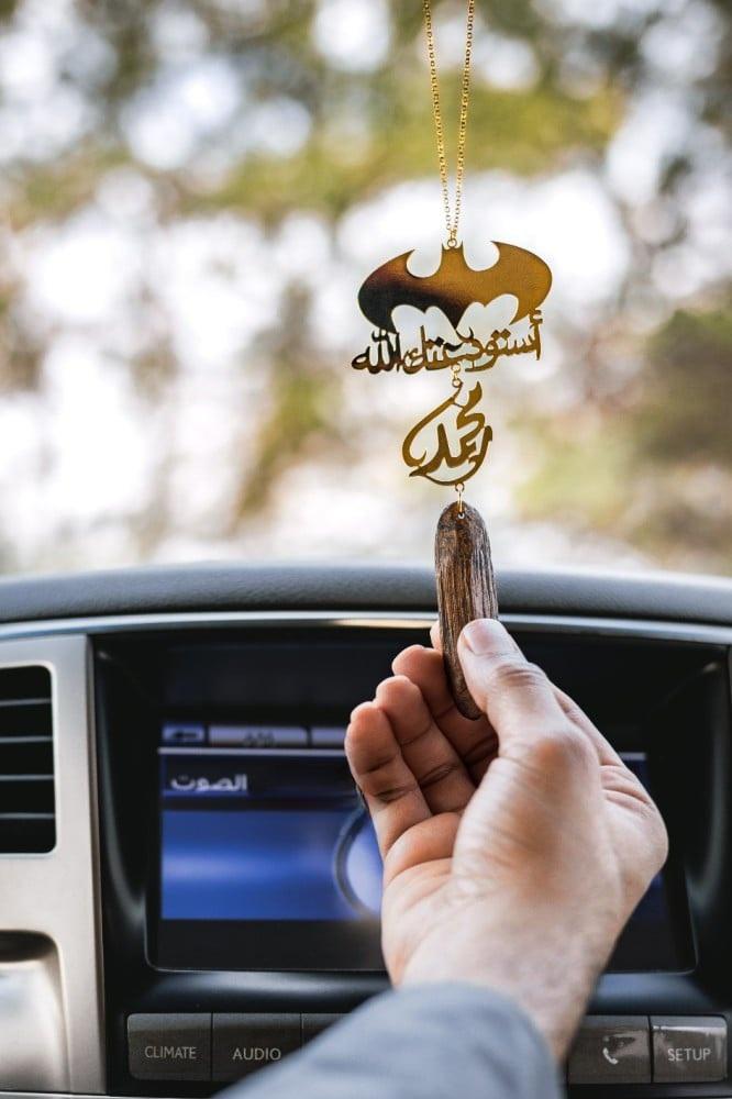 تعليقة سيارة على شكل شعار باتمان بالاسم
